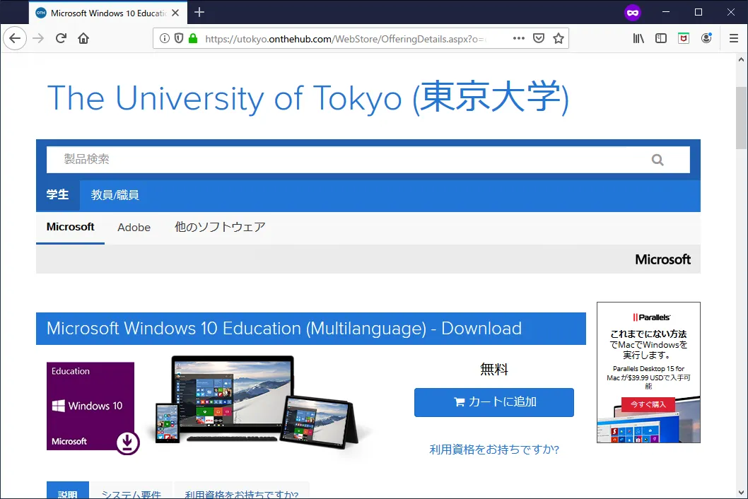 Windows 10 HomeのPCを東京大学のライセンスを用いてEducationエディションにアップグレードする