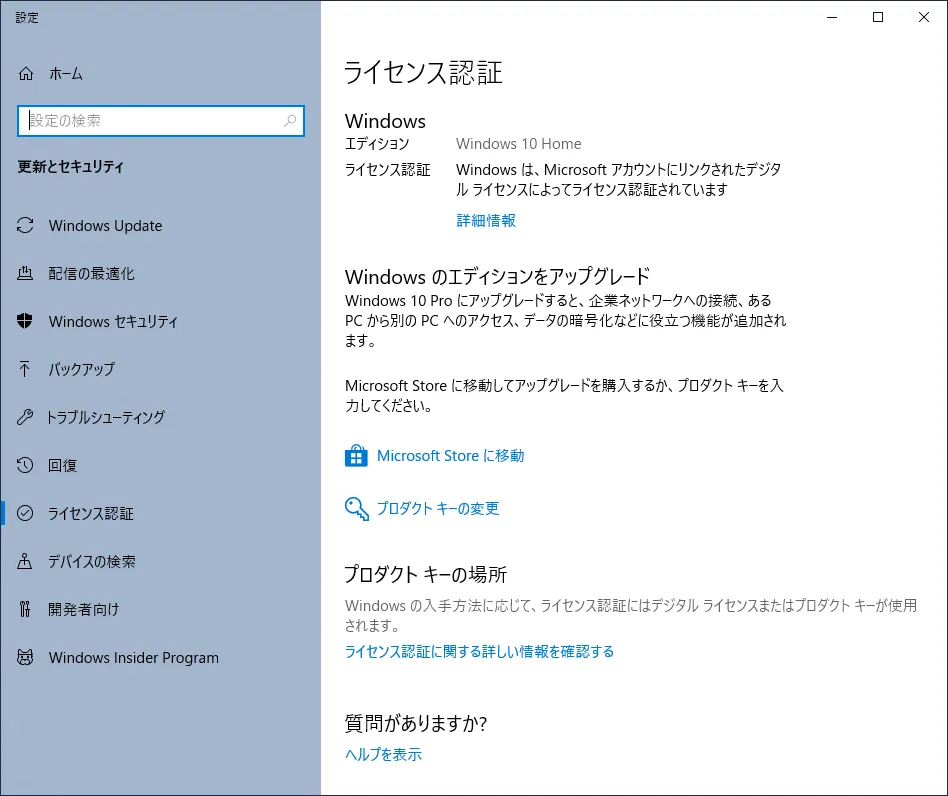 「プロダクト キーの変更」をクリックします。
